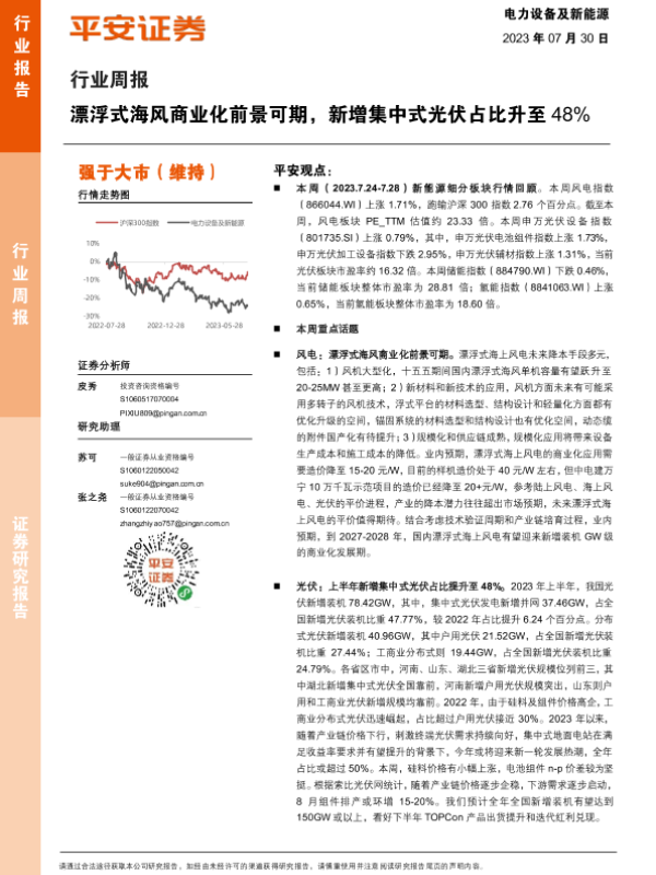 【平安证券】【20230730】20230730-平安证券-电力设备及新能源行业周报:漂浮式海风商业化前景可期,新增集中式光伏占比升至48%-24页 行业研究