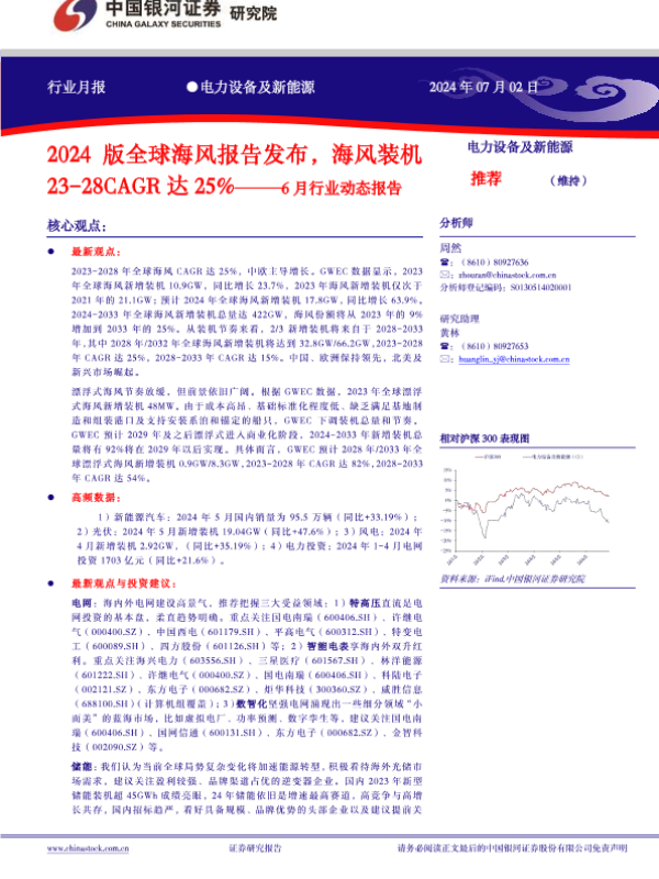 【银河证券】【20240702】电力设备及新能源行业6月行业动态报告:2024版全球海风报告发布,海风装机23-28CAGR达25%-18页 行业研究