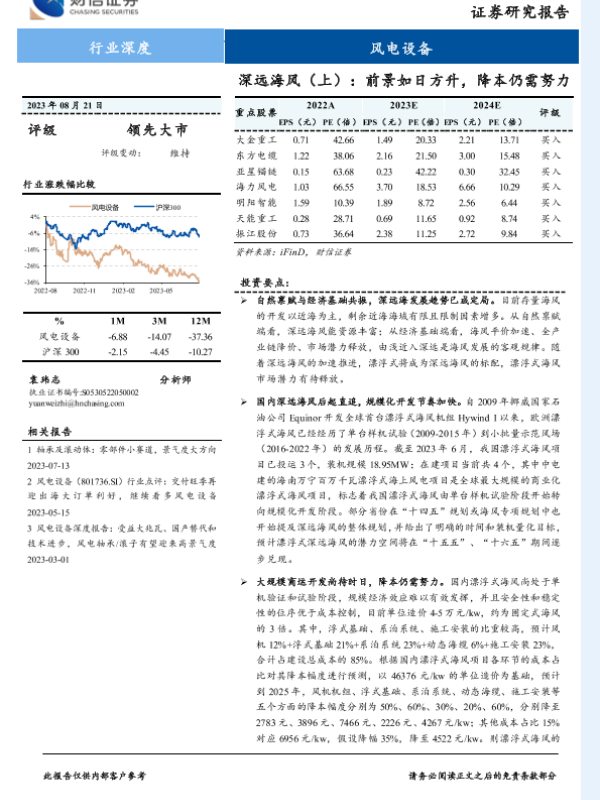 【财信证券】【20230821】20230821-财信证券-风电设备行业深度:深远海风(上):前景如日方升,降本仍需努力-25页 行业研究