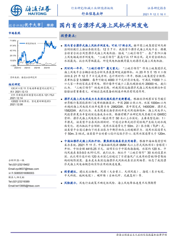 【海通证券】【20211216】国内首台漂浮式海上风机并网发电-2页 行业研究