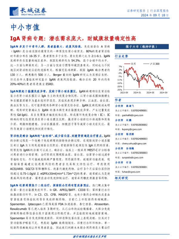 【长城证券】【20240918】医药行业IgA肾病专题:潜在需求庞大,耐赋康放量确定性高-71页 行业研究