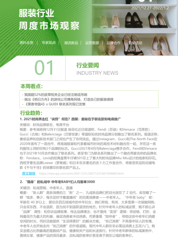 【艾瑞咨询】【20220102】2022年第1周:服装行业周度市场观察-9页 行业研究