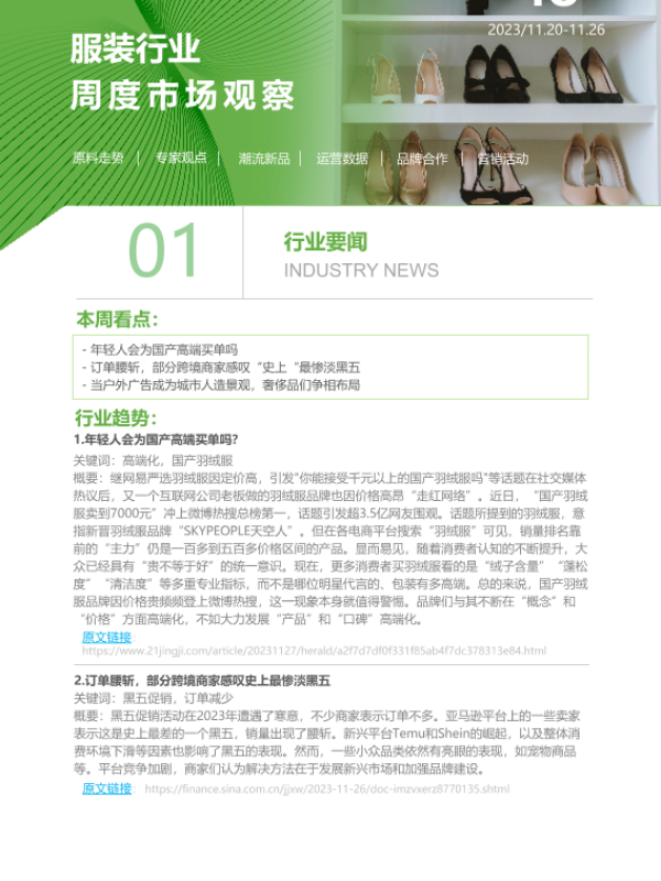 【艾瑞咨询】【20231126】2023年第48周:服装行业周度市场观察-6页 市场调研