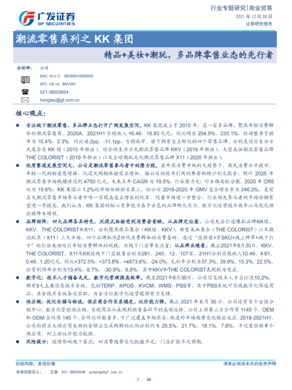 【广发证券】【20211220】商业贸易行业专题研究:潮流零售系列之KK集团 精品+美妆+潮玩,多品牌零售业态的先行者-34页 行业研究