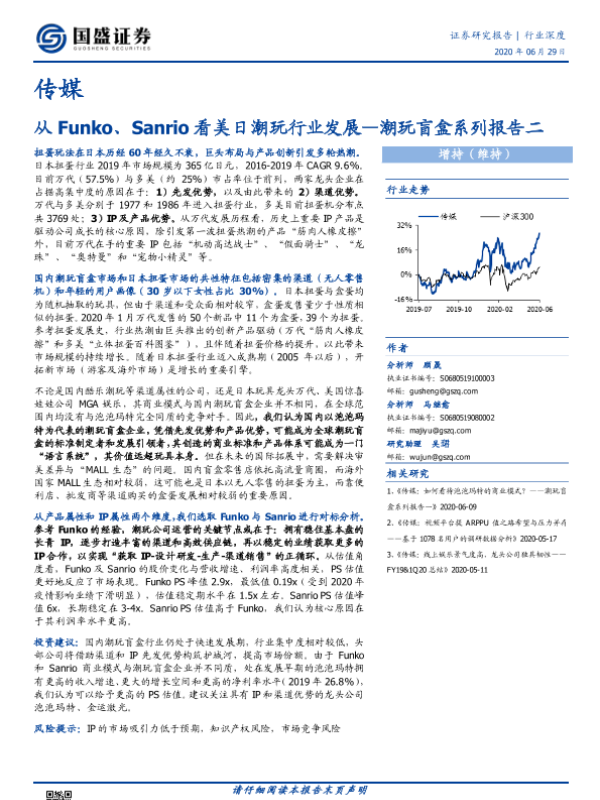 【国盛证券】【20200629】从Funko、Sanrio看美日潮玩行业发展—潮玩盲盒系列报告二-27页 行业研究