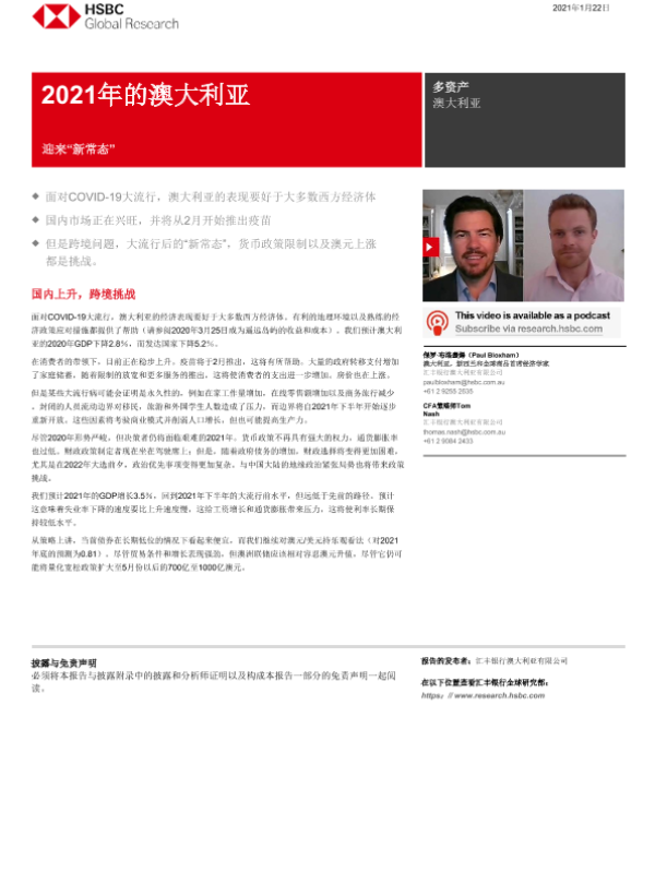 【HSBC】【20210122】亚太地区宏观策略之澳大利亚2021:上升到“新常态”-31页 宏观策略