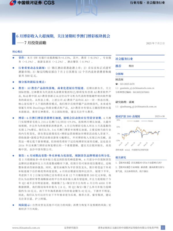 【银河证券】【202507】社会服务行业7月投资前瞻-15页 行业研究