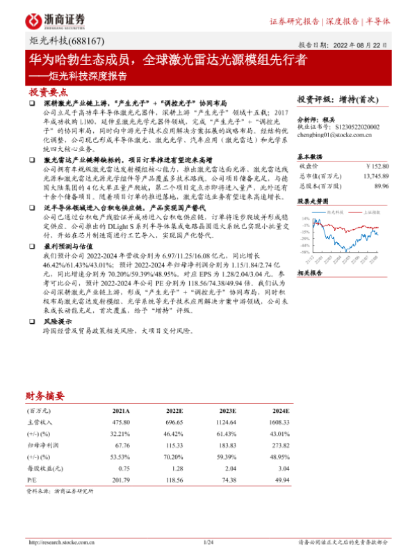 【浙商证券】【20220822】炬光科技深度报告:华为哈勃生态成员,全球激光雷达光源模组先行者-24页 行业研究