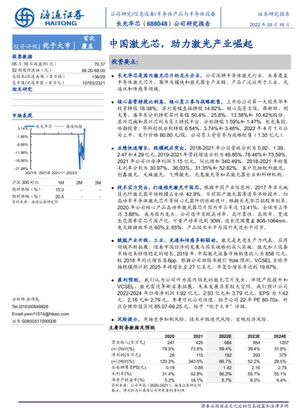 【海通证券】【20220516】20220516-海通证券-长光华芯-688048.SH-中国激光芯,助力激光产业崛起-37页 行业研究
