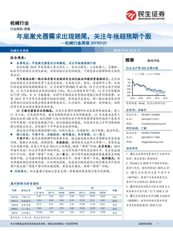 【民生证券】【20190121】机械行业周报:年底激光器需求出现翘尾,关注年报超预期个股-17页 行业研究