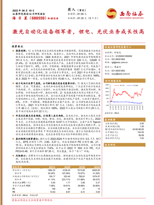 【西南证券】【20220619】激光自动化设备领军者,锂电、光伏业务成长性高-27页 行业研究