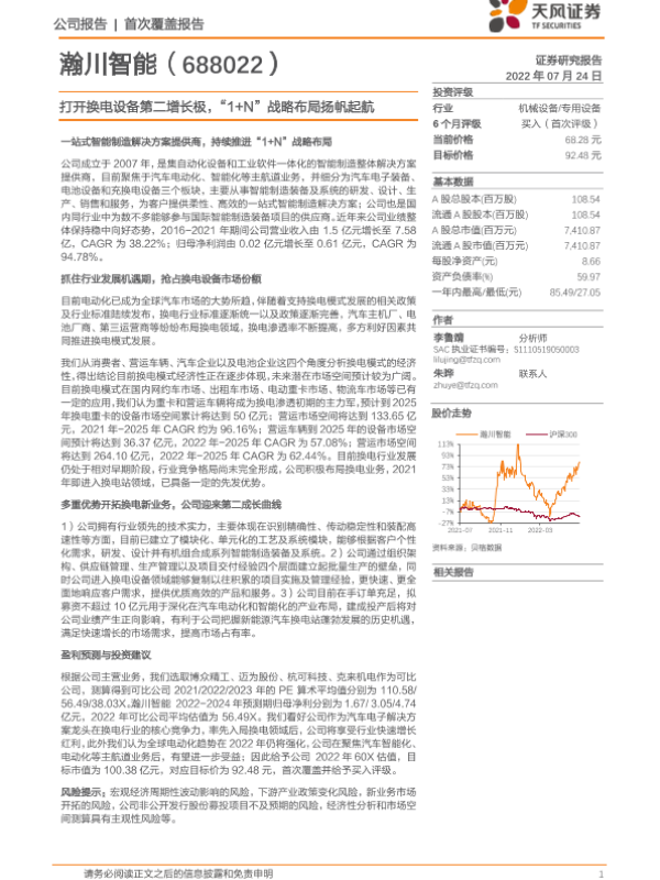 【天风证券】【20220724】瀚川智能-688022.SH-打开换电设备第二增长极,“1+N”战略布局扬帆起航-35页 行业研究