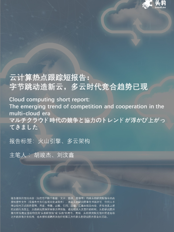 【头豹研究院】【20220315】云计算热点跟踪短报告:字节跳动造新云,多云时代竞合趋势已现-26页 行业研究
