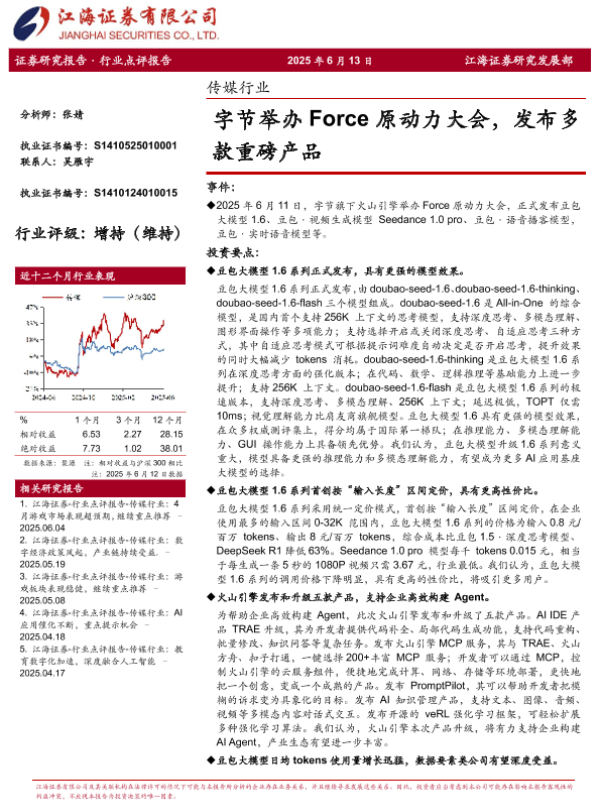 【江海证券】【20250613】字节举办Force原动力大会,发布多款重磅产品-4页 证券期货研究报告