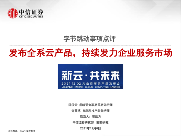 【中信证券】【20211206】字节跳动事项点评-发布全系云产品,持续发力企业服务市场-22页 行业研究