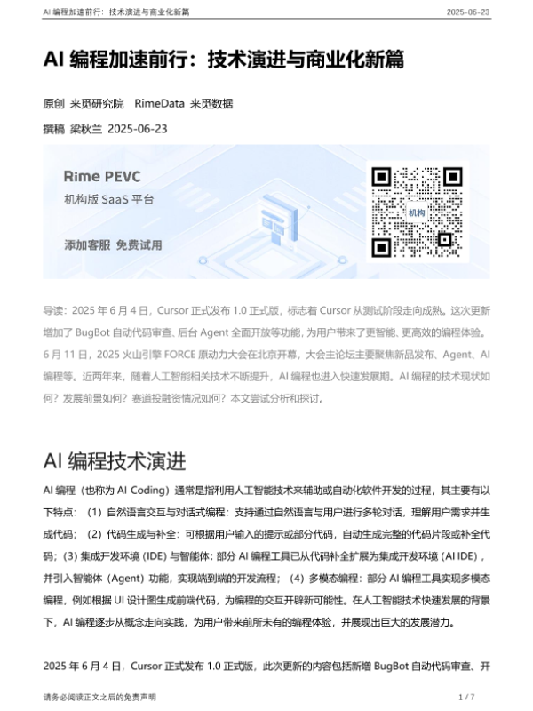 【深圳来觅数据信息科技】【20250623】AI编程加速前行:技术演进与商业化新篇-7页 行业研究