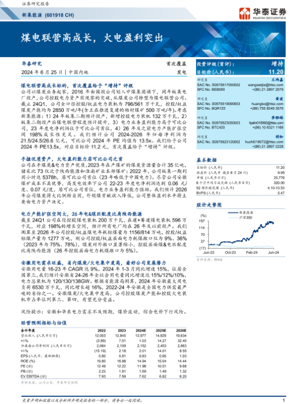 【华泰证券】【20240625】新集能源(601918 CH)煤电联营高成长,火电盈利突出-29页 行业研究
