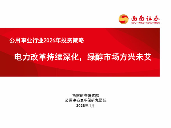 【西南证券】【202601】公用事业行业2026年投资策略:电力改革持续深化,绿醇市场方兴未艾-39页 证券期货研究报告