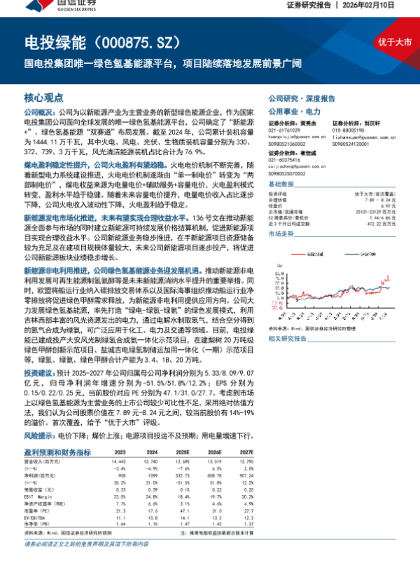 【国信证券】【202502】电投绿能:国电投集团唯一绿色氢基能源平台,项目陆续落地发展前景广阔-46页 公司研究