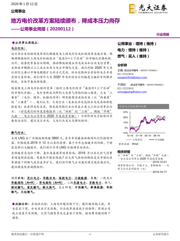 【光大证券】【20200112】地方电价改革方案陆续颁布,降成本压力尚存-10页 行业研究