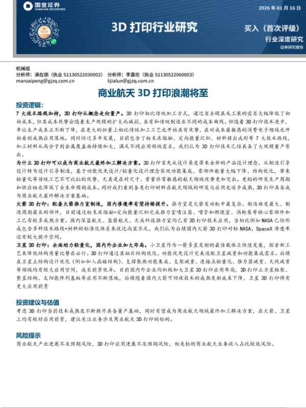 【国金证券】【202601】商业航天 3D打印浪潮将至-55页 证券期货研究报告