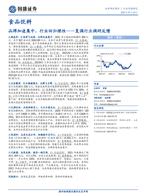 【国盛证券】【20220726】食品饮料复调行业调研反馈:品牌加速集中,行业回归理性-11页 行业研究