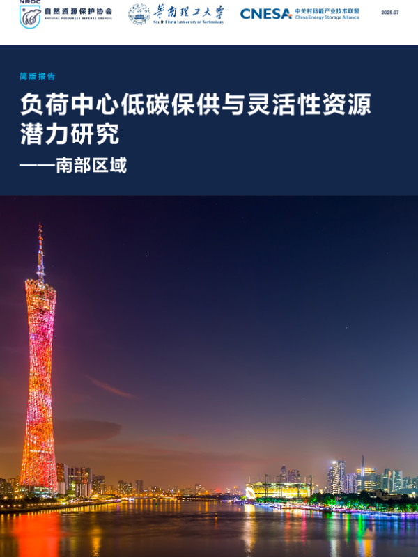 【自然资源保护协会(NRDC)&华南理工大学(SCUT)&中关村储能产业技术联盟(CNESA)】【202507】负荷中心低碳保供与灵活性资源潜力研究——南部区域-36页 行业研究