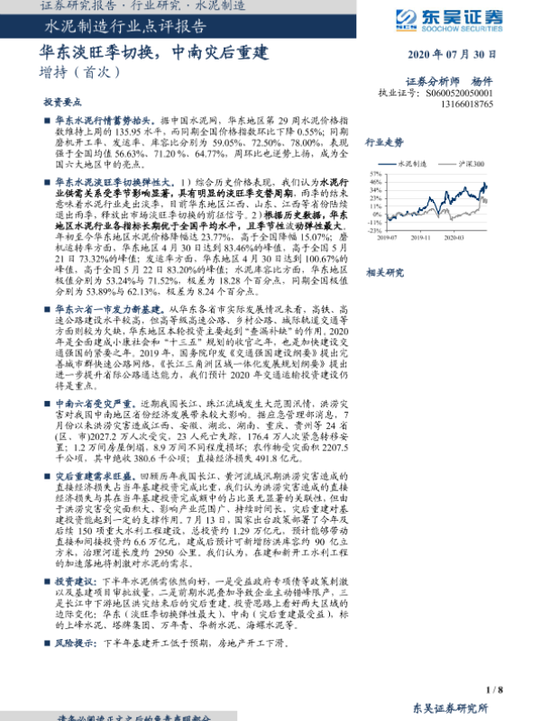 【东吴证券】【20200730】华东淡旺季切换,中南灾后重建-8页 行业研究