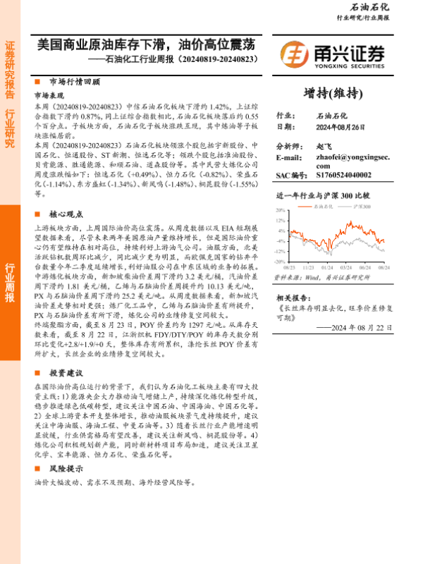 【甬兴证券】【20240826】20240826-甬兴证券-石油化工行业周报:美国商业原油库存下滑,油价高位震荡-11页 行业研究