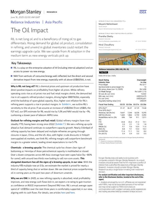 【Morgan Stanley】【2025】信实工业:石油的影响-10页 公司研究