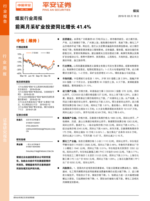 【平安证券】【20190318】20190318-平安证券-煤炭行业周报:前两月采矿业投资同比增长41.4%-5页 行业研究