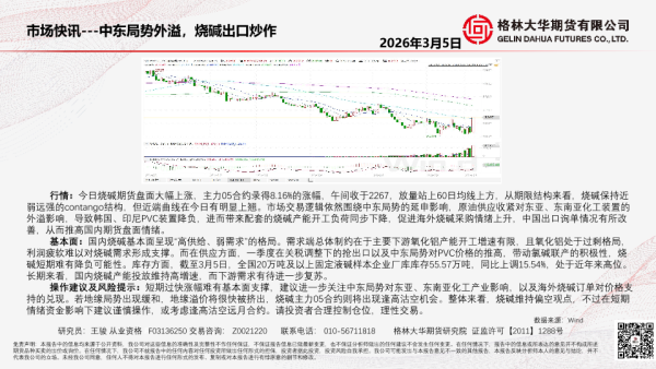 【格林大华期货研究院】【202603】市场快讯---中东局势外溢,烧碱出口炒作-1页 证券期货研究报告