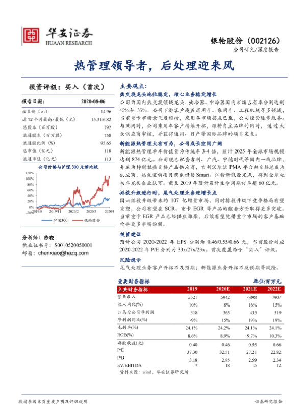 【华安证券】【20200806】20200806-华安证券-银轮股份-002126.SZ-热管理领导者,后处理迎来风-34页 行业研究