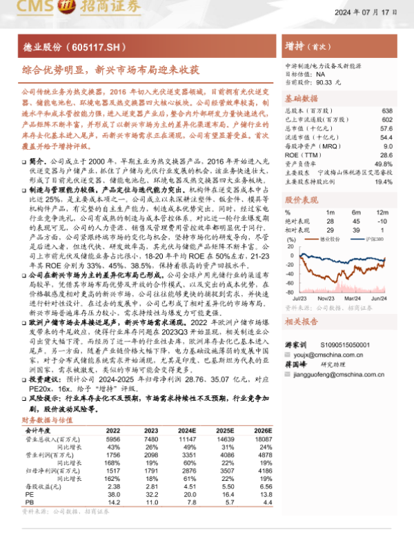 【海通证券】【20240717】德业股份(605117)综合优势明显,新兴市场布局迎来收获-21页 行业研究