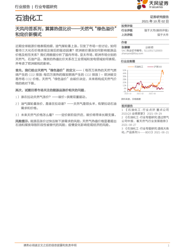 【天风证券】【20211002】天风问答系列:算算热值比价-天然气“绿色溢价”和定价新模式-7页 行业研究