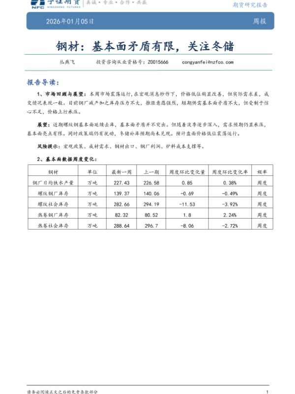 【宁证期货有限公司】【202601】钢材_市场成交减弱_短期震荡为主-5页 证券期货研究报告