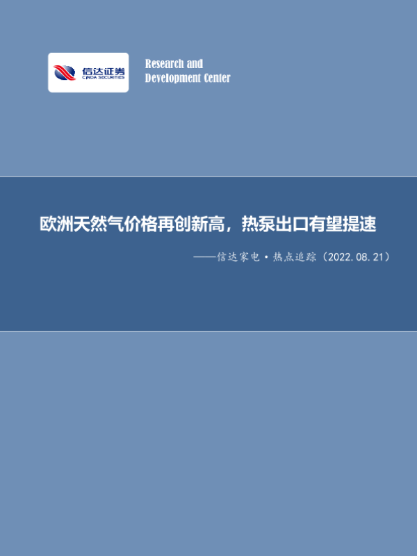 【信达证券】【20220807】欧洲能源价格飙升拉动热泵出口需求,关注家电企业中报业绩-12页 行业研究