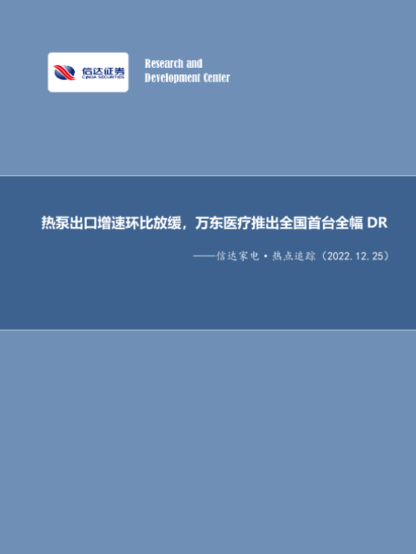 【信达证券】【20221225】信达家电·热点追踪:热泵出口增速环比放缓,万东医疗推出全国首台全幅DR-12页 行业研究
