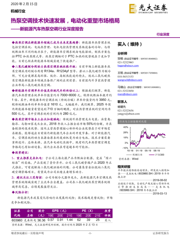 【光大证券】【20200215】20200215-光大证券-新能源汽车热泵空调行业深度报告:热泵空调技术快速发展,电动化重塑市场格局-19页 行业研究