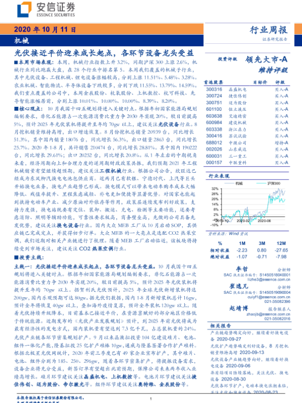 【安信证券】【20201011】机械行业周报:光伏接近平价迎来成长起点,各环节设备龙头受益-19页 行业研究