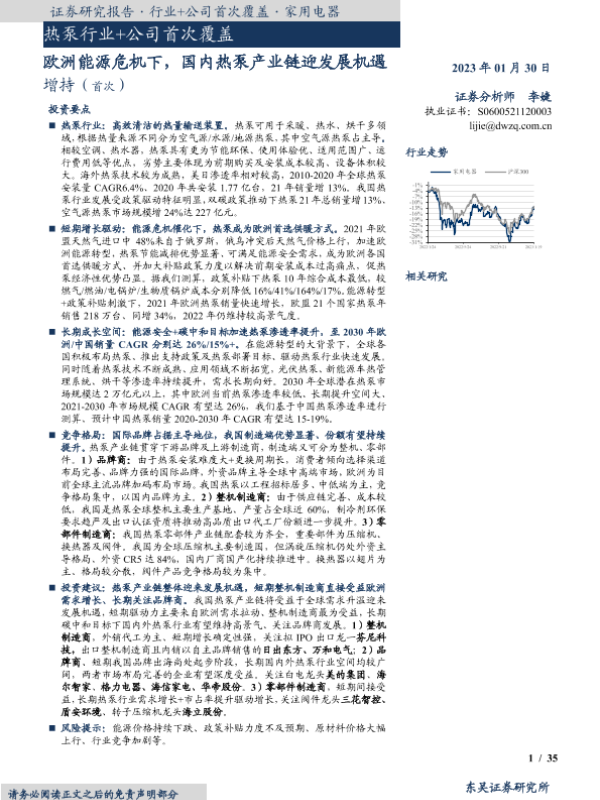 【东吴证券】【20230130】热泵行业+公司首次覆盖:欧洲能源危机下,国内热泵产业链迎发展机遇-54页 行业研究