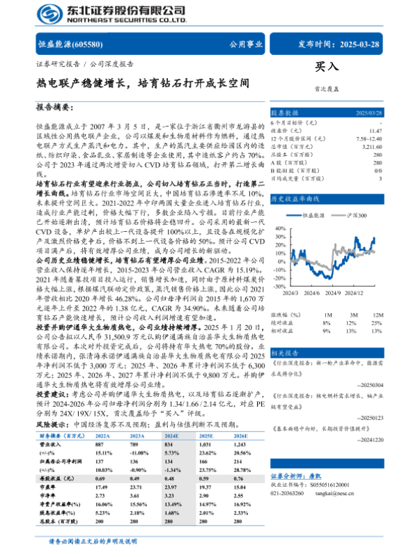 【东北证券】【20250328】热电联产稳健增长,培育钻石打开成长空间-30页 证券期货研究报告