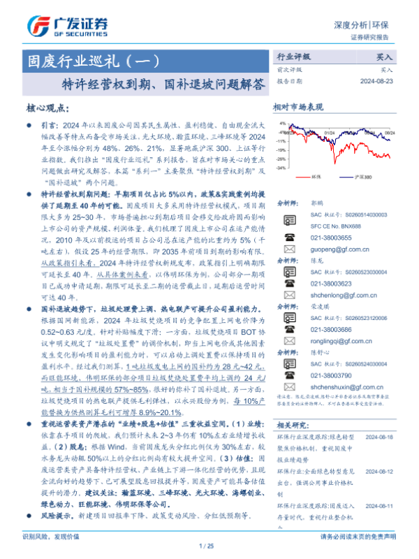 【广发证券】【20240823】固废行业巡礼(一):特许经营权到期、国补退坡问题解答-25页 行业研究