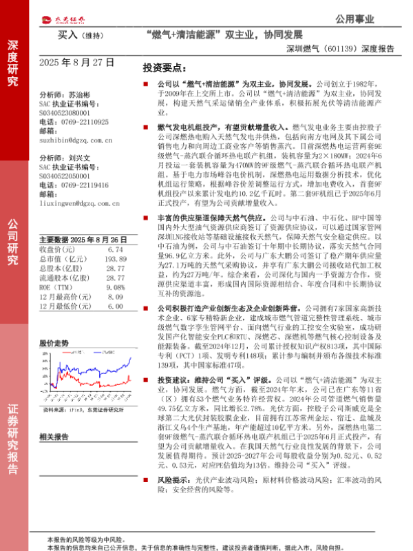 【苏志彬】【20250827】深圳燃气-601139.SH-深度报告:“燃气+清洁能源”双主业,协同发展-13页 证券期货研究报告
