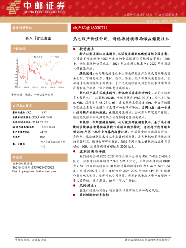 【中邮证券】【20250707】物产环能-热电联产价值外延,新能源持续布局熔盐储能技术-18页 证券期货研究报告