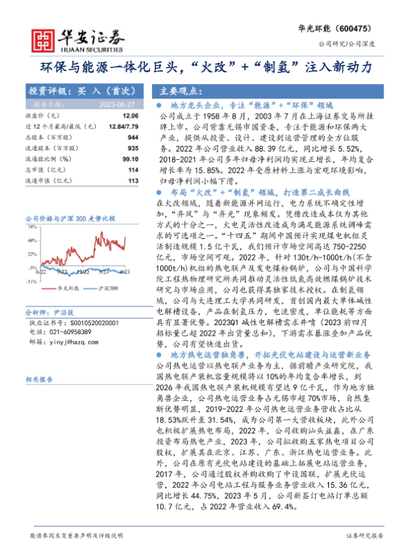 【华安证券】【20230627】环保与能源一体化巨头,“火改”+“制氢”注入新动力-36页 行业研究