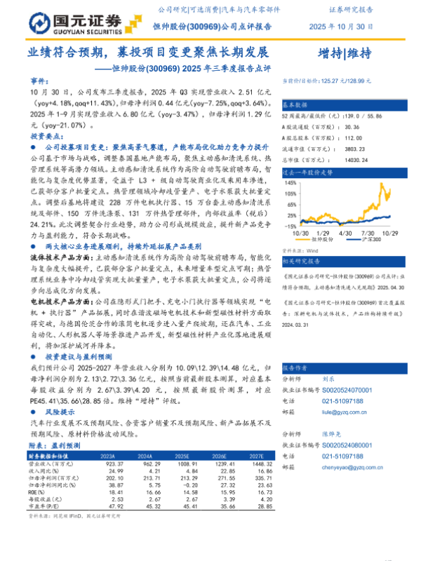 【国元证券】【202510】业绩符合预期,募投项目变更聚焦长期发展——恒帅股份(300969) 2025年三季度报告点评-3页 证券期货研究报告