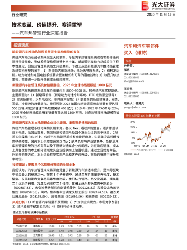 【光大证券】【20201119】汽车热管理行业深度报告:技术变革、价值提升、赛道重塑-50页 行业研究