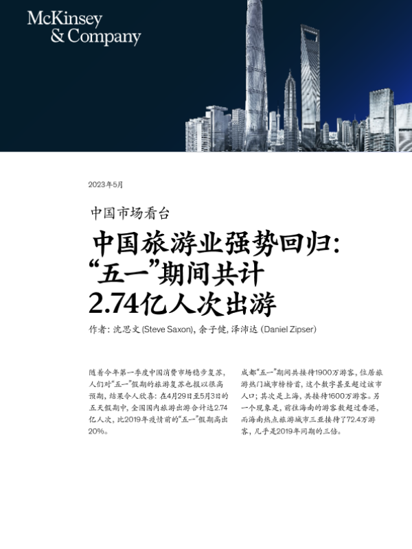 【麦肯锡公司】【202305】中国旅游业强势回归:五一期间2.74亿人次出游-3页 行业研究