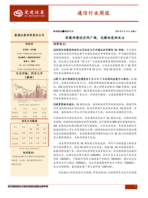 【爱建证券】【20190910】20190910-爱建证券-通信行业周报:承载网建设空间广阔,光模块受到关注-12页 行业研究